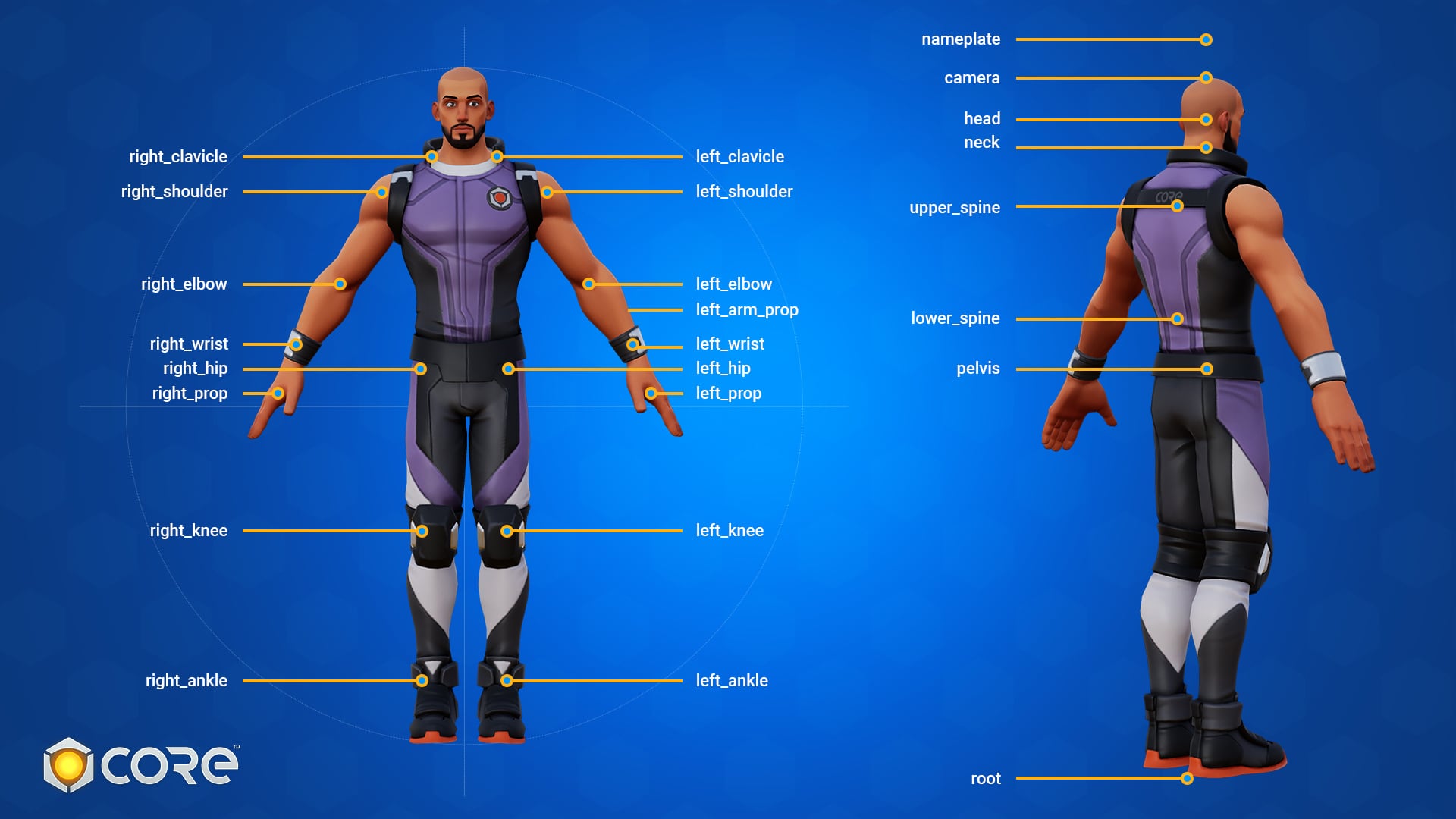 Sockets are different points on a player's character mesh. They can be used for attaching objects, controlling a ragdoll effect and more.